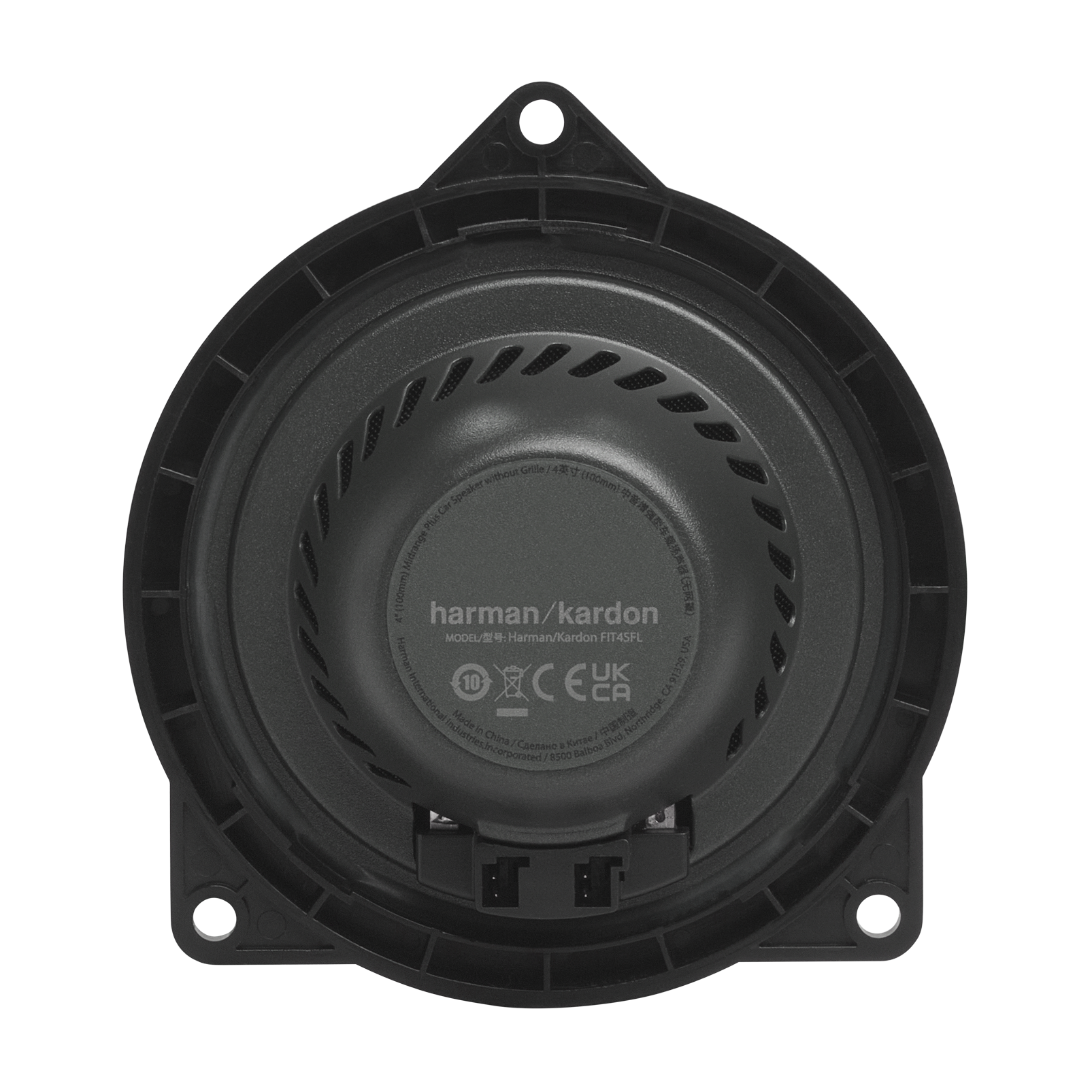 The Harman Kardon FIT4SFL is a 4-inch grille-less midrange plus speaker designed to enhance the midrange performance in your vehicle. It delivers clear, detailed sound reproduction, ideal for audio enthusiasts looking for a complete upgrade to their car sound system.