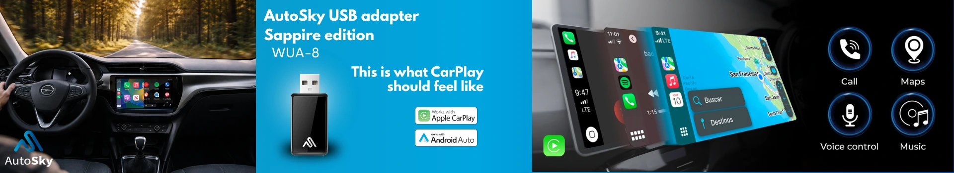 AutoSky WUA-8: een CarPlay dongle die Apple CarPlay & Android Auto draadloos maakt