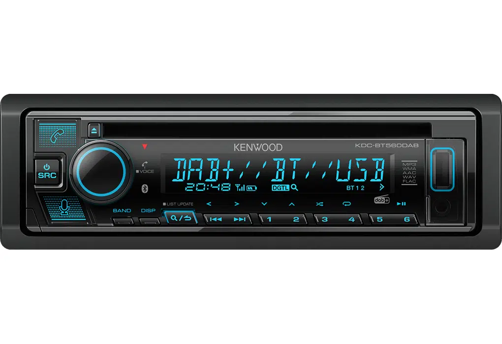 De Kenwood KDC-BT560DAB is een 1-DIN autoradio met CD-loopwerk en DAB+ digitale radio. Luister kraakhelder zonder ruis, bel handsfree en stream muziek via Bluetooth. Speel muziek af via CD, USB of AUX.