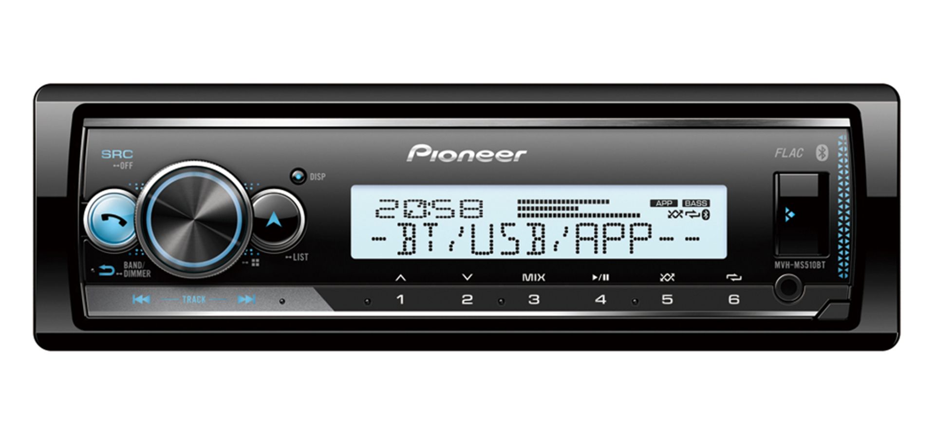 De Pioneer MVH-MS510BT is een 1-DIN *mechless* receiver speciaal voor boten en campers. Bel veilig handsfree en stream muziek draadloos. Het waterafstotende frontpaneel en de corrosiebestendige printplaat maken hem ideaal voor marinegebruik.